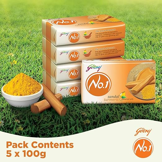 - Contains: 5 units of Godrej No. 1 Bathing Soap, Sandal & Turmeric (100g each)