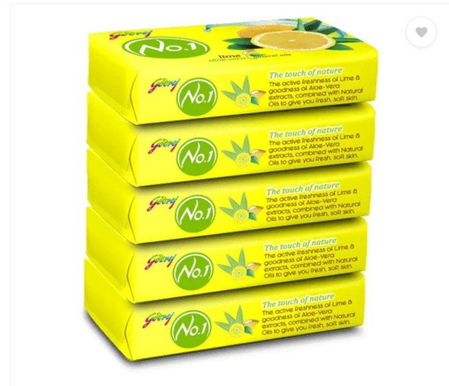 • Contains: 5 units of Godrej No. 1 Lime & Aloe Vera Bath Soap (100g each)