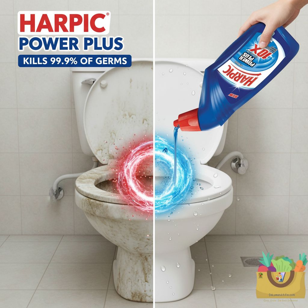 - Harpic Disinfectant Toilet Cleaner kills 99.9% of germs, ensuring a hygienically clean toilet every time.