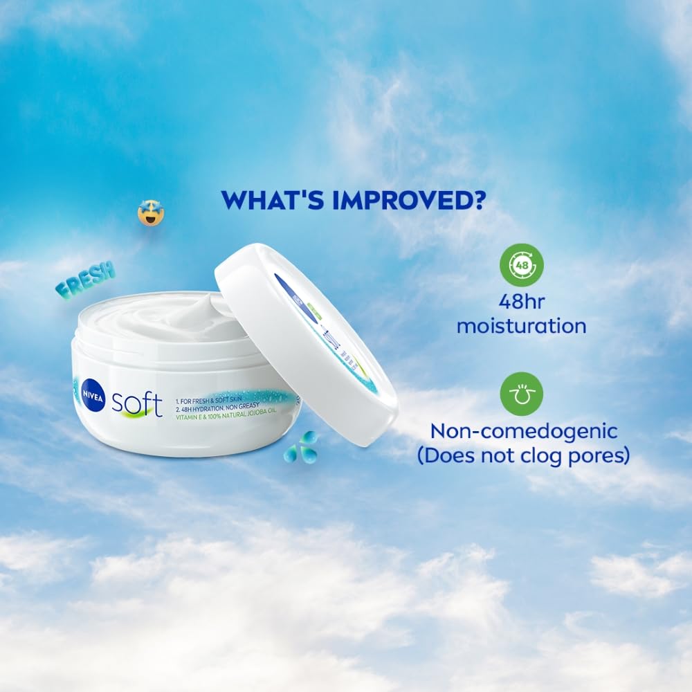 - Light & Non-Greasy: NIVEA Soft provides instant softness and freshness with its quick-absorbing, lightweight formula suitable for all seasons.